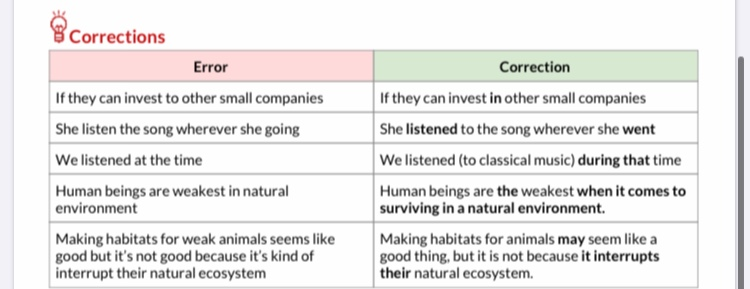 튜터가 저렇게 짤막하게 내용만 적어주었지만, go on a date, get to know each other, big noisy place, argue 등 확인할 표현들을 알 수 있네요.