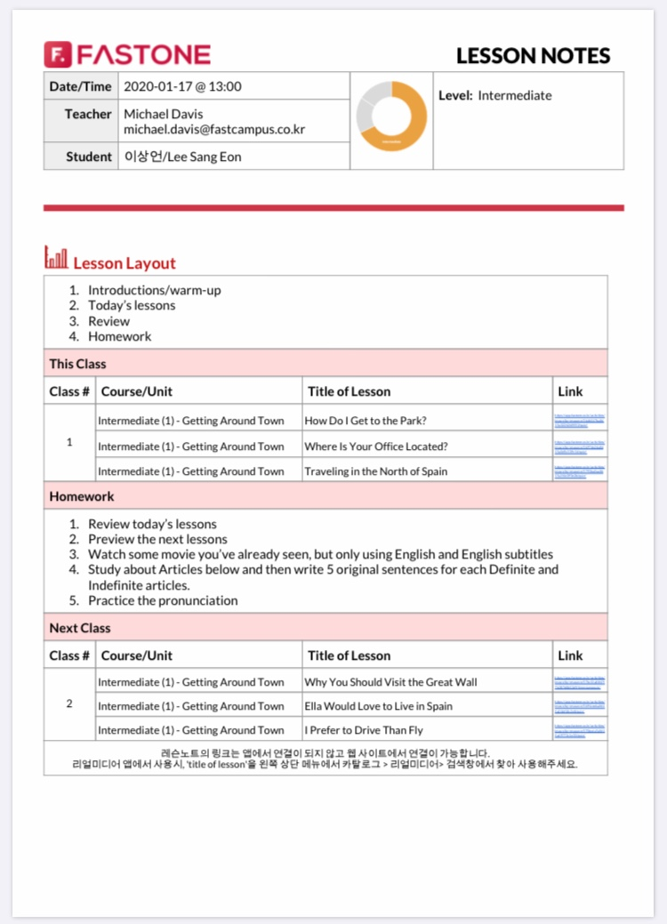 이 정도가 수확이었던것 같아요. 사실 첫 수업이라 그런지 voca를 포함해서 교재의 내용이 조금 쉬웠던것 같습니다.